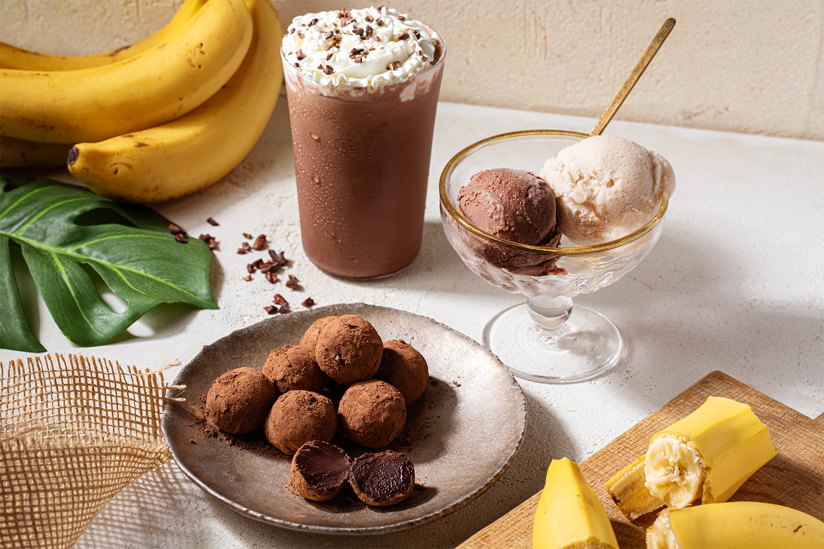 実はカカオと共に育てられることも多い「バナナ」を使用した、『バナナトリュフ』&『バナナジェラート』がdari K丸の内オアゾ店に登場!定番商品『カカオバナナフラッペ』と共に、チョコレートとバナナが奏でるハーモニーをぜひお楽しみください。