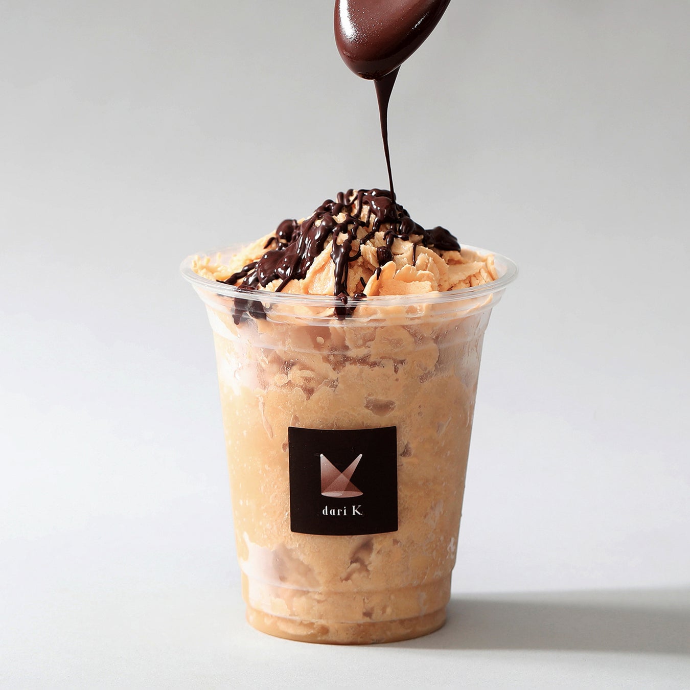 dari Kはインドネシアの農家と共に栽培から手掛けた、良質なカカオ豆を使用しています。柔らかくふわふわとした食感の氷は、水ではなく自家製のカシューナッツミルクを使っています。カカオと同じ産地で収穫された生カシューナッツを焙煎し、きび砂糖と合わせてコクと香ばしさのある濃厚なカシューナッツミルクに仕上げました。カカオ本来の苦味や酸味を持つカカオマスを、より美味しく召し上がっていただくため、氷はあえてジェラートのように甘く仕上げています。パリパリ食感のビターなカカオマスと、柔らかく甘いカシューミルク氷の食感と味わいのコントラストをぜひご堪能ください。