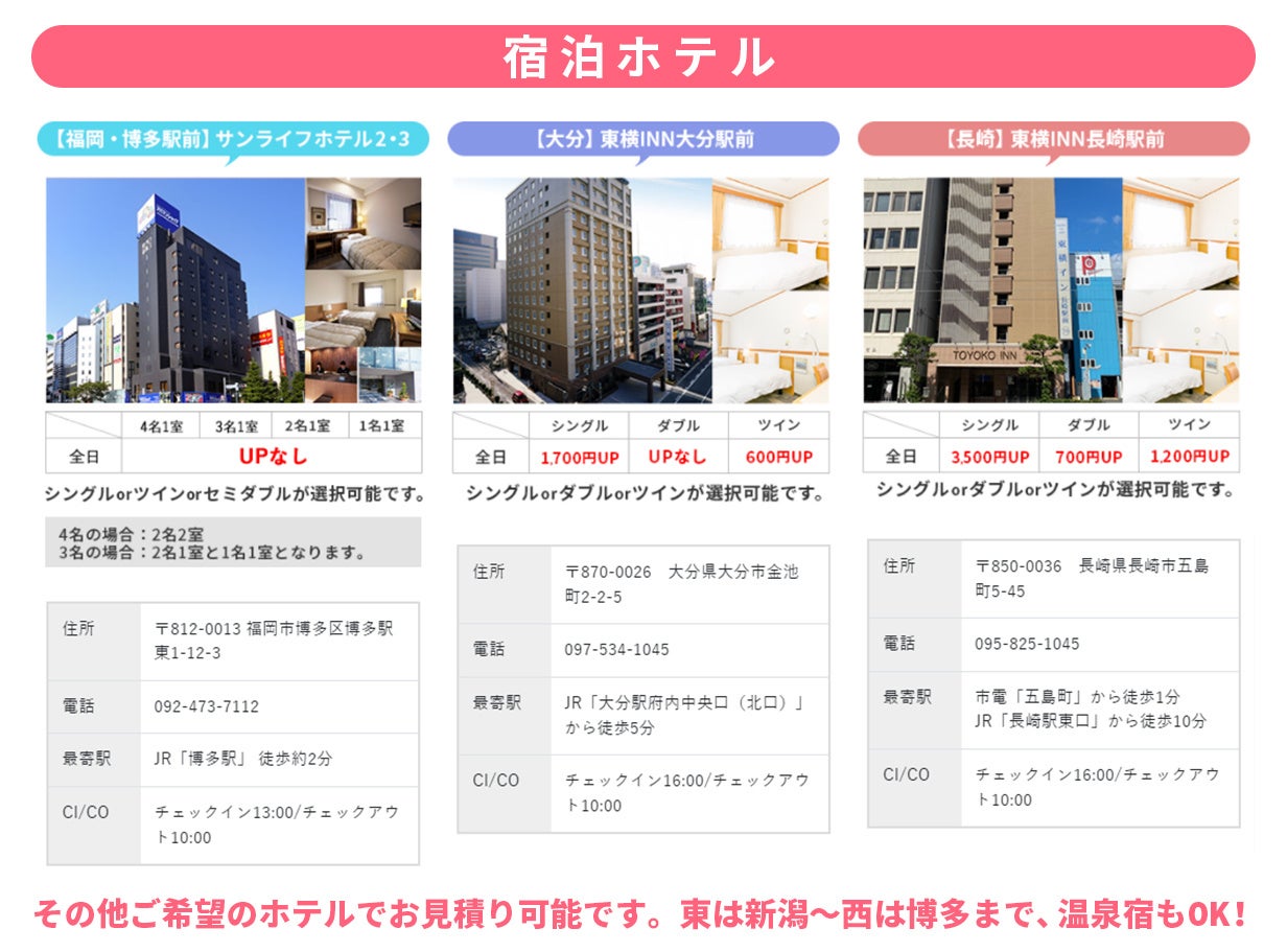 株式会社フォーティーズ(本社:大阪市鶴見区、代表取締役 岡武史)はみんなの九州きっぷ、JR九州管轄(新幹線・特急を含む)の普通車自由席(指定席6回利用可能)が乗り放題と当社提携ホテルもしくはお客様がご希望のホテル・旅館などをお手配するプランを2022年1月14日より追加発売開始しました。
