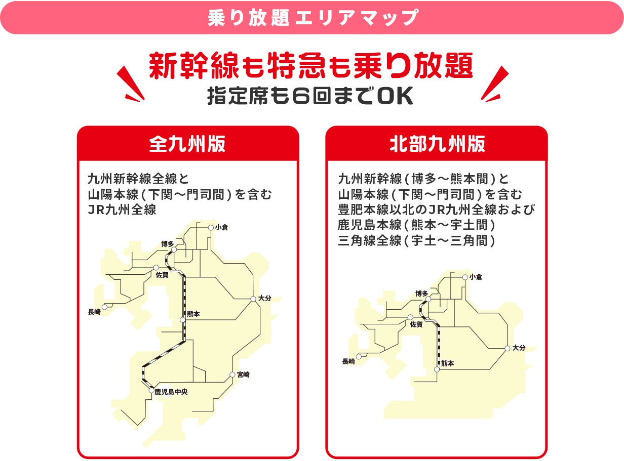JR九州の九州新幹線、特急列車(指定席6回利用可能)、快速、普通列車が乗り放題!