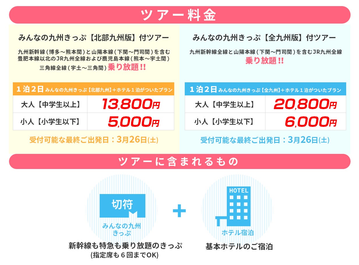 みんなの九州きっぷとホテル宿泊がセットになったツアーです。