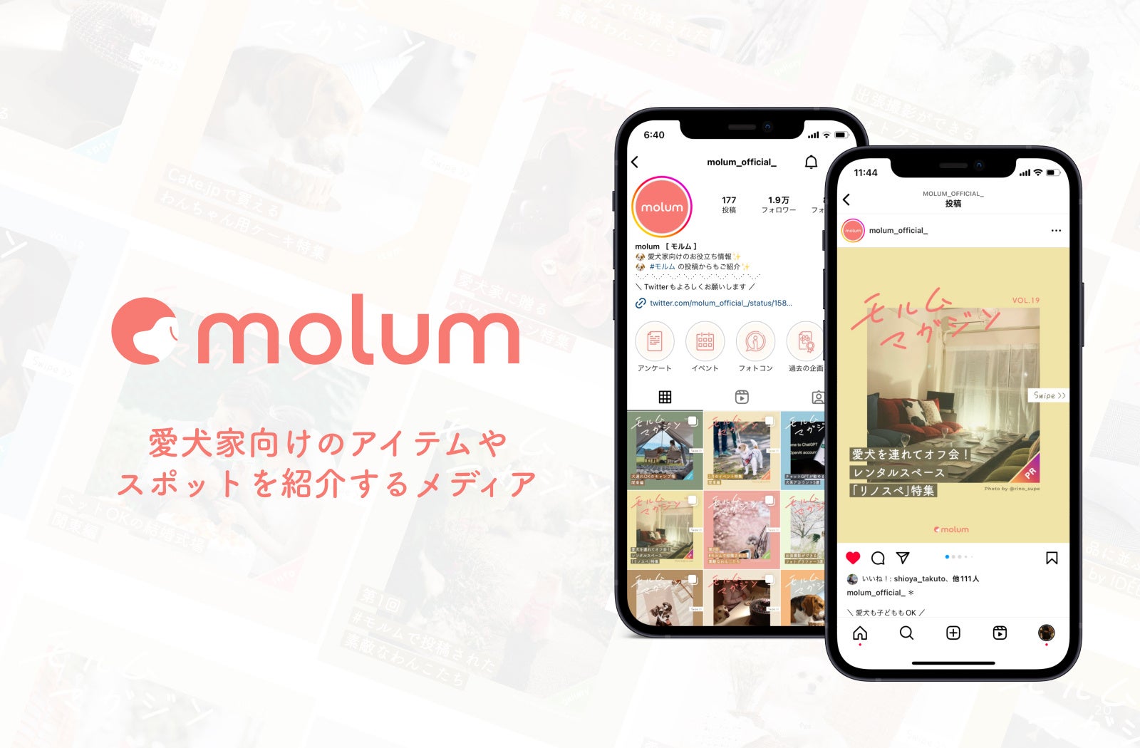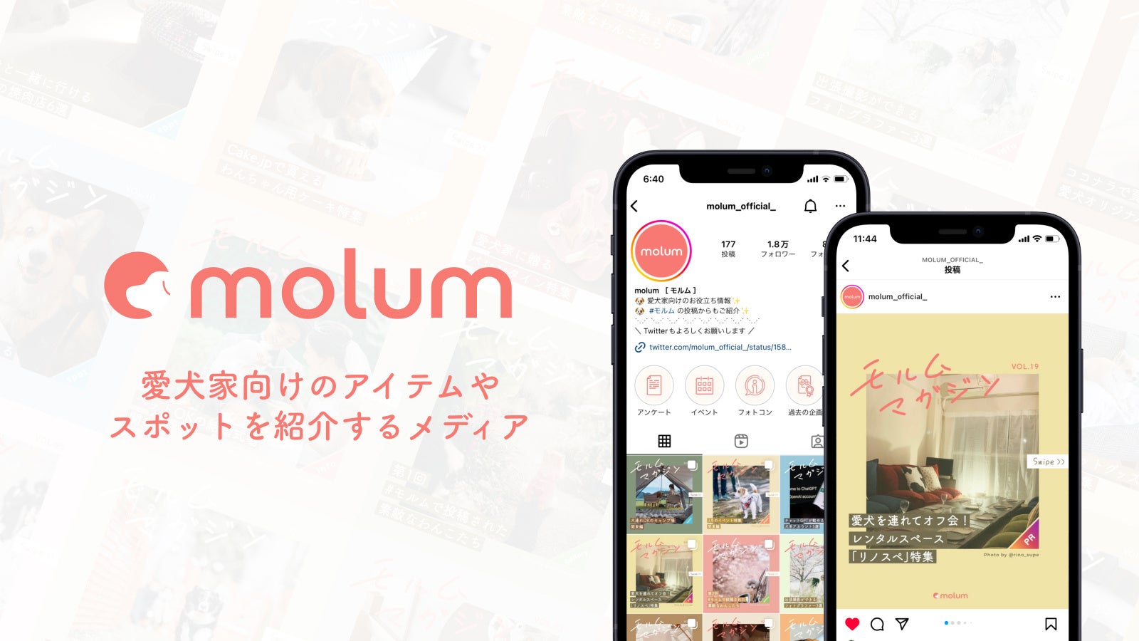 弊社では、molum [モルム]リリースの1年以上前から愛⽝家向けのInstagramを運営しております。