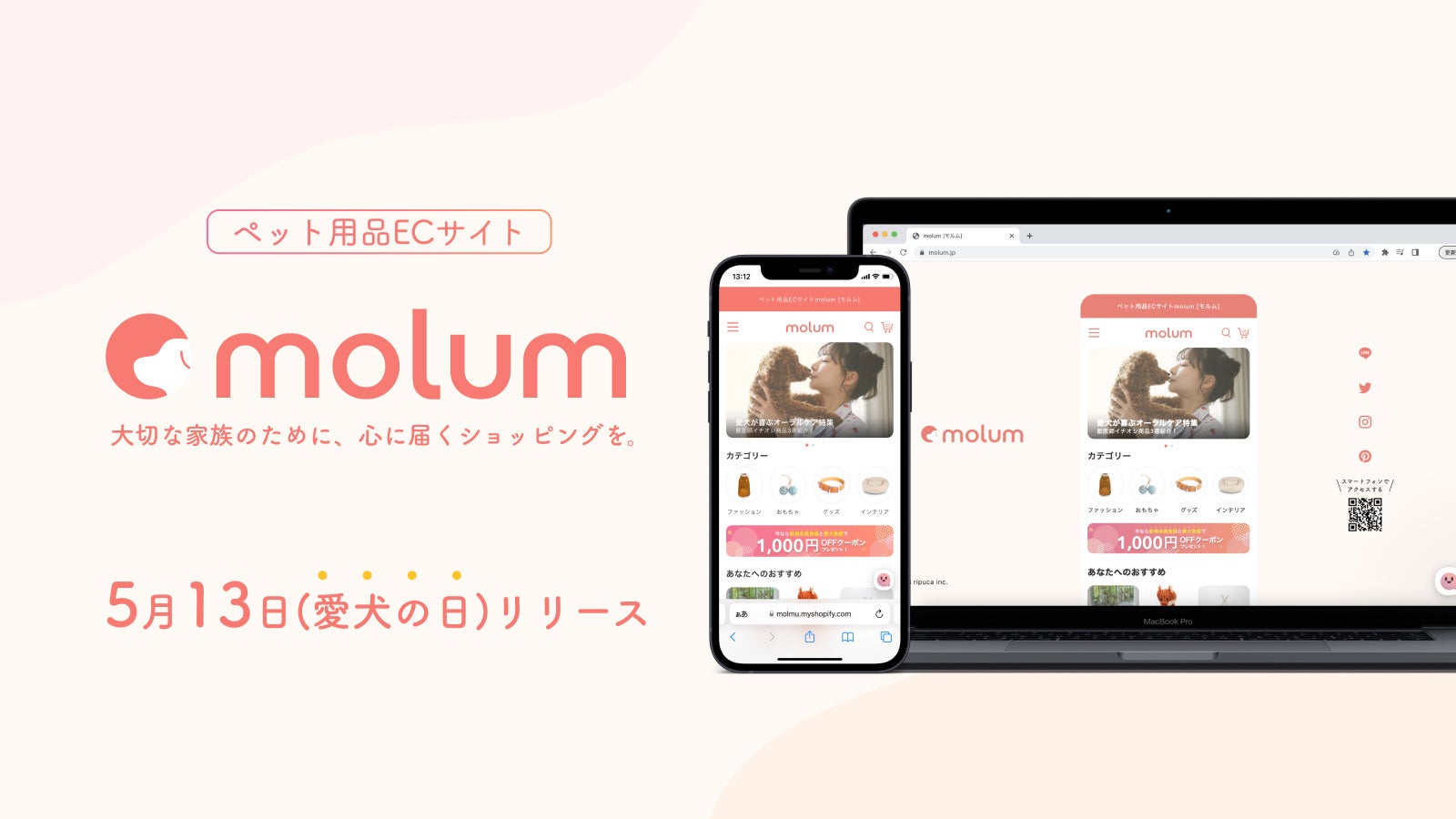 株式会社リプカ( 本社:東京都新宿区 )は、2023年5月13日の愛犬の日に、ペット用品ECサイトmolum[モルム]をリリースいたします。