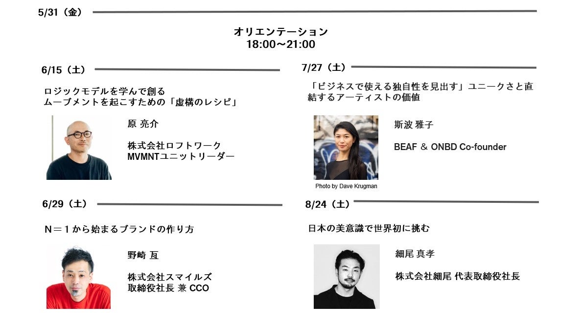 講師:各界を牽引する 8 名の講師陣(講師と1日座学 & ワークショップ)