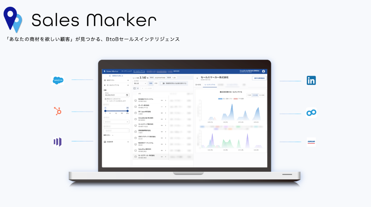 CrossBorder株式会社は、BtoBセールスを行っている企業向けに「あなたのサービスを欲しい顧客に営業できる」をコンセプトに、従来の営業リストを活用したアウトバウンド営業プロセスにおける課題を解決するSales Markerを提供しています。