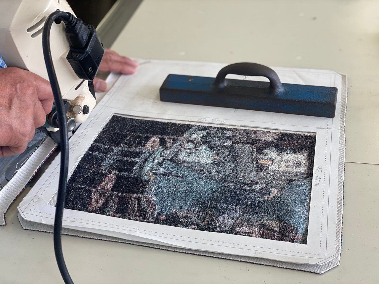 デニムを彩る「作品」が完成! 大原美術館ミュージアムストアとデニムファクトリー青木被服がコラボレーションで制作したデニム絵画ジャガードマット!