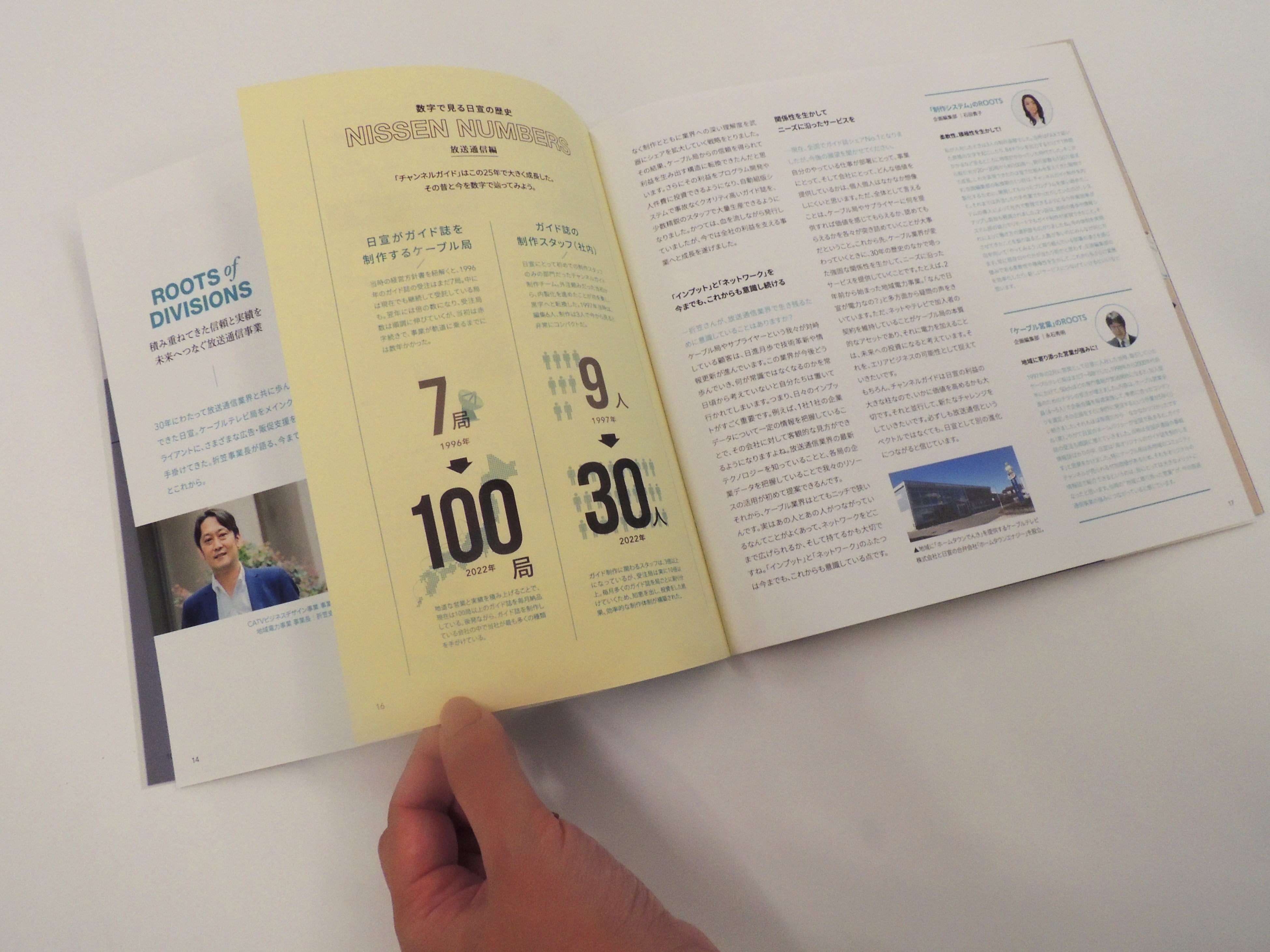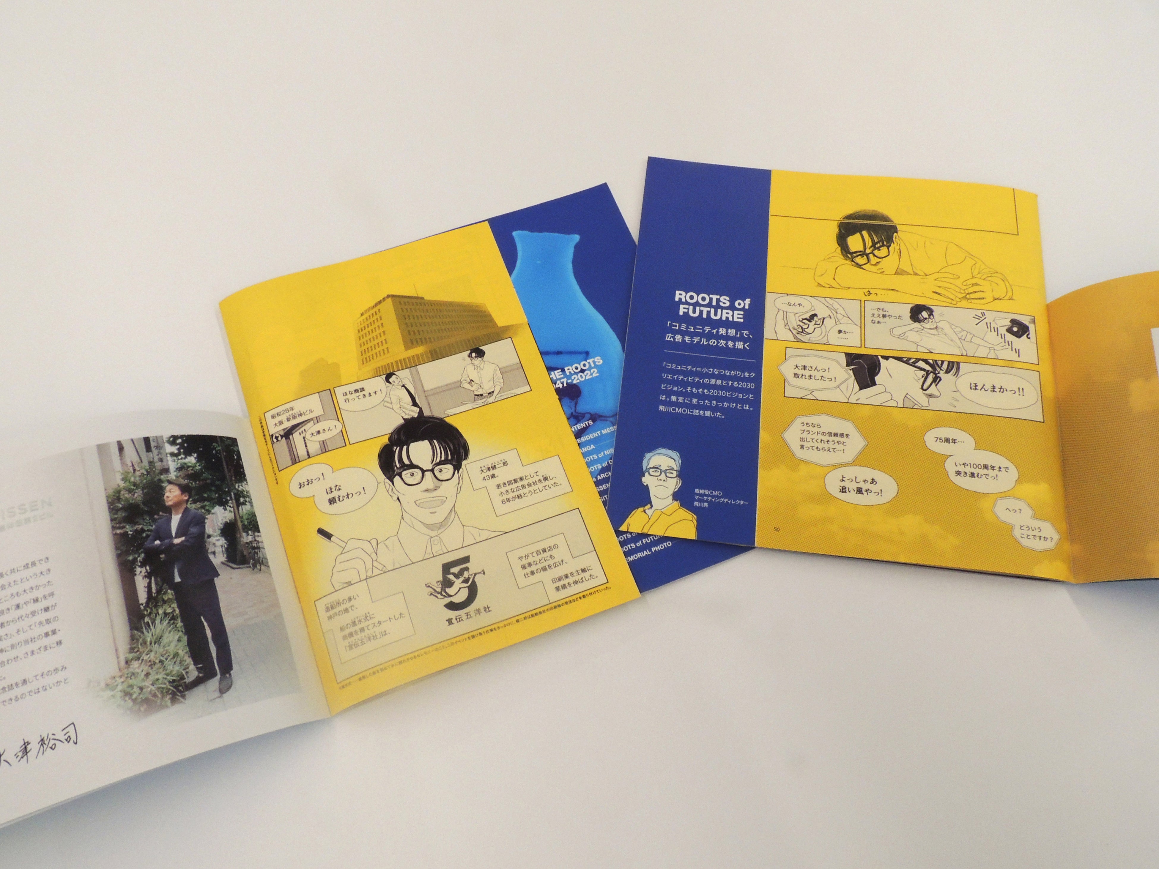ただし、いわゆる「周年誌」的な歴史を羅列しただけの読み物ではなく、「日宣の歴史=個人の挑戦の歴史」と捉えて、社員が歩んできた道のりにスポットを当てるべく、「ルーツ」をコンセプトに設定。目の前の仕事には必ず起源があり、その内容を知ることで会社、所属している事業、なにより自分自身の仕事に誇りを持てる内容にすることを編集方針として制作したのが本作となります。この受賞は当社の強みであるクリエイティビティが活かされた結果と考えます。
