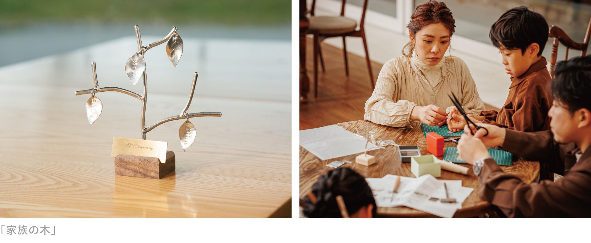 ご家族皆様で錫100%製の記念品「家族の木」を製作します。⼩さなお⼦様がいる場合にも、⼀緒に楽しめるワークショップです。