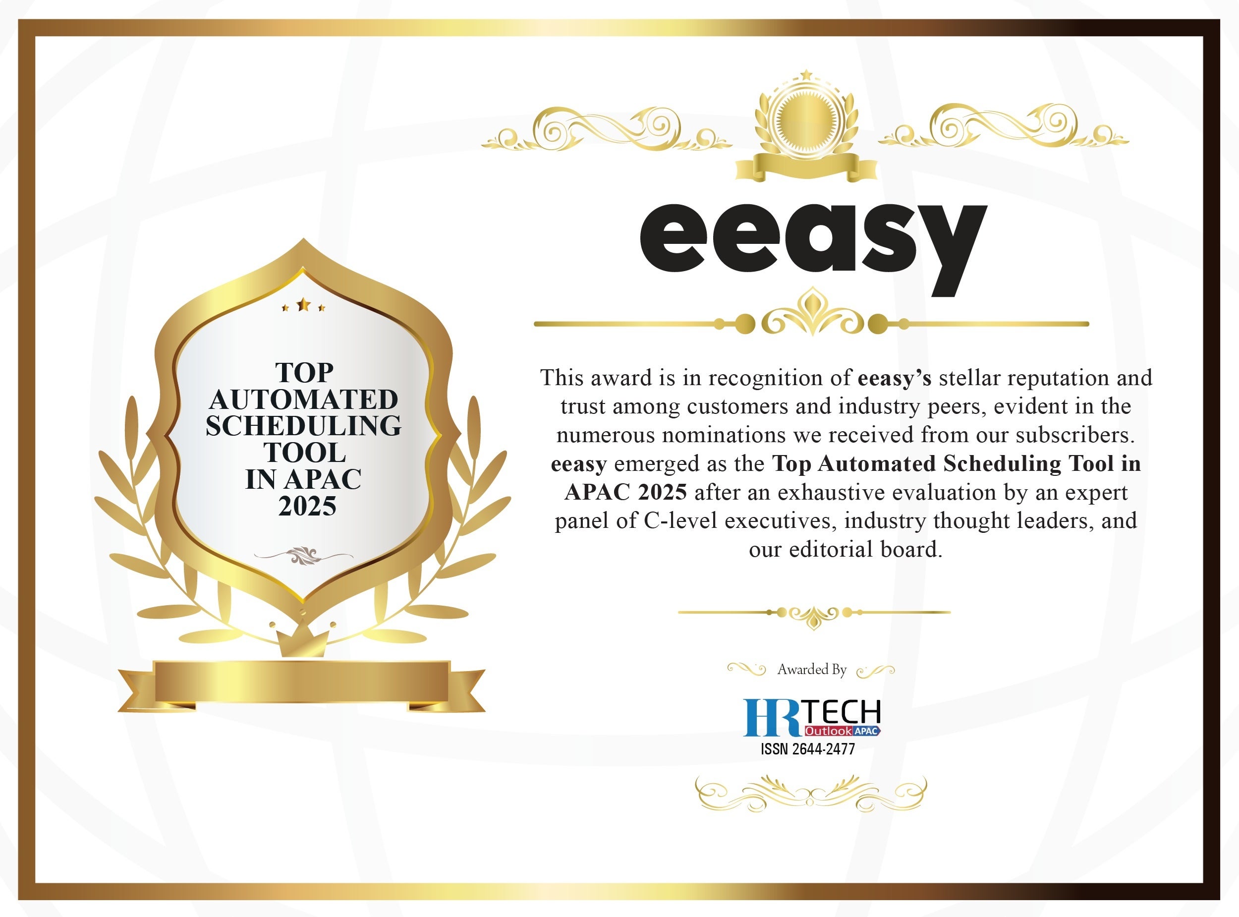 今回、評価委員会の満場一致の評価により、eeasyが 「Top Automated Scheduling Tool in APAC 2025(アジア太平洋 No.1 日程調整ツール 2025)」を受賞しました。