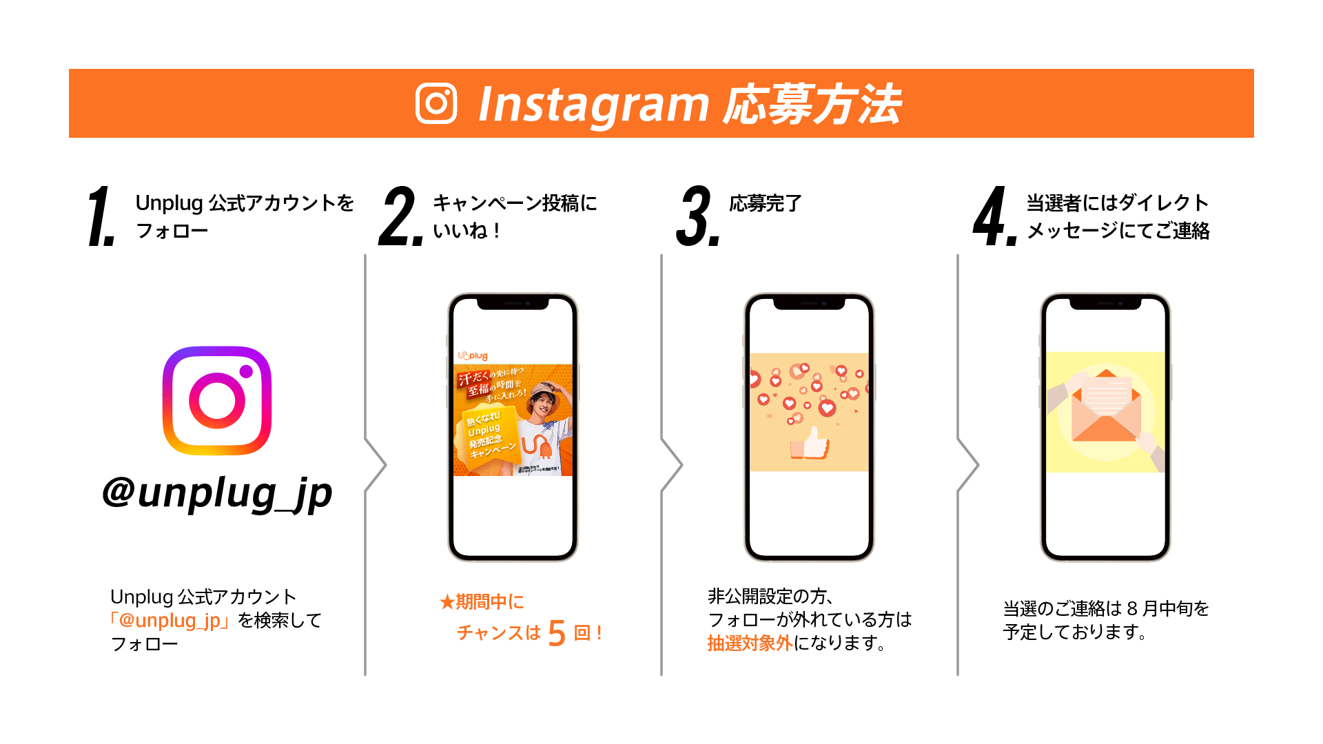 ①Unplugの公式Instagram(@unplug_jp)をフォロー(※すでにフォローいただいている方も対象です)