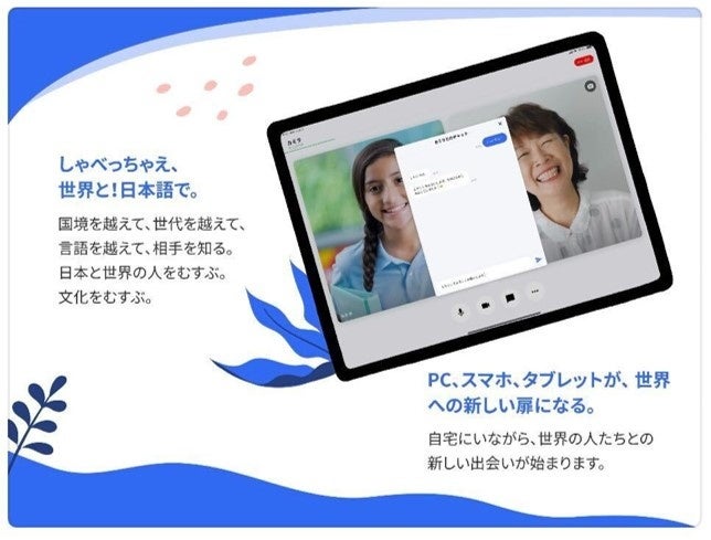日本の人と日本ファンの世界の人を"日本語"で繋ぐ「日本語でのグローバル・コミュニケーション・サービス」です。予約、会話、評価、分析まで一気通貫で行い、日本の高齢化問題、外国人の教育や文化理解の課題をワンストップで解決。