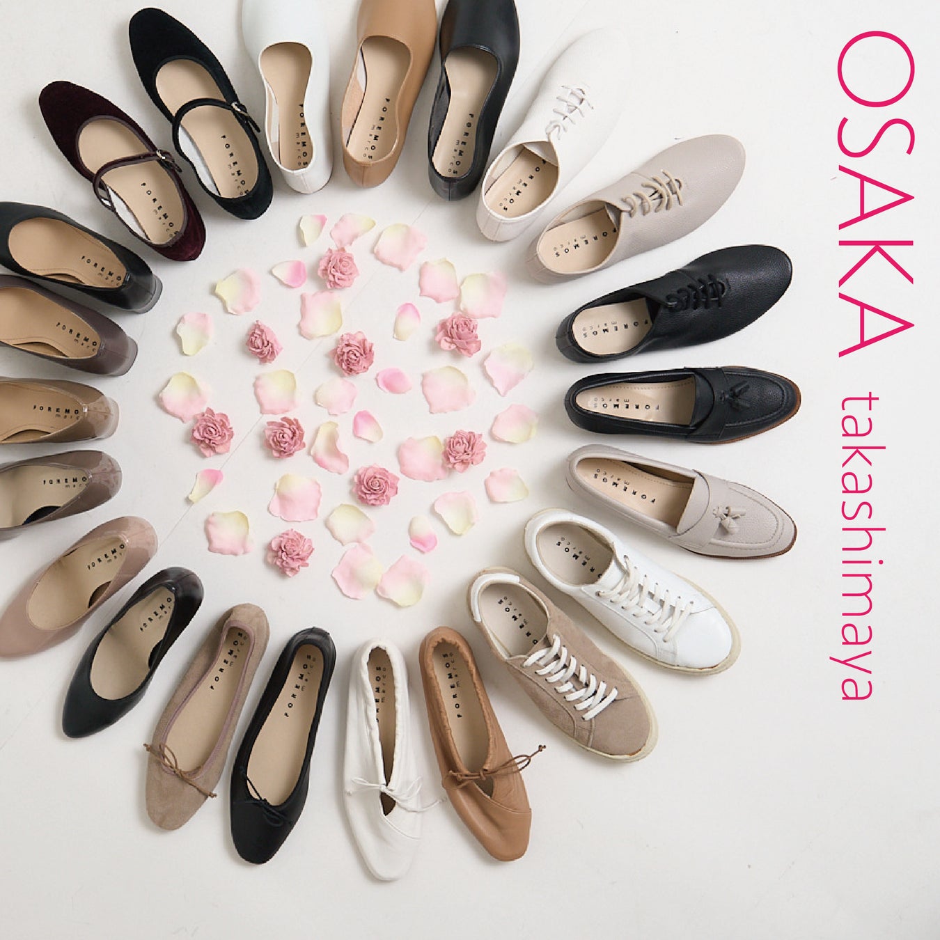 関西地区での初めての常設店舗ということで、FOREMOS marcoの通年人気な定番パンプスを中心に、ローファーやスニーカーそしてブーツなど、豊富なラインナップとなっております。
