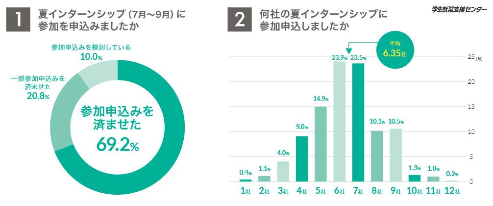 - 90.0%の学生が7月上旬までに夏インターン参加申込 平均6.35社の参加