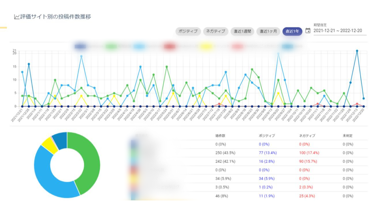 特定のキーワードで抽出したデータは、自社独自の技術で各媒体ごとに数値化・分類された状態でご提供いたします。