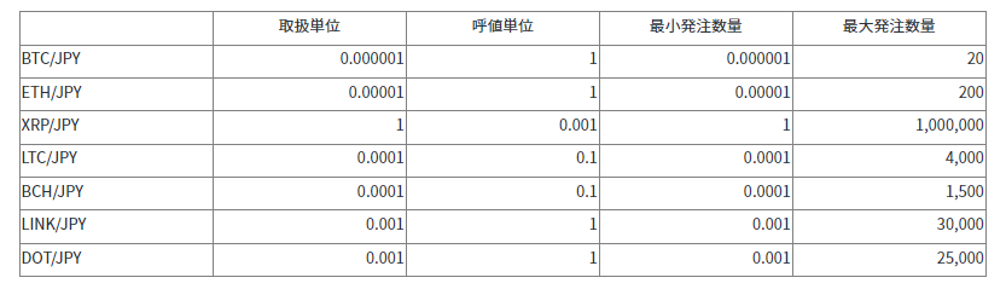 ・取扱銘柄:7銘柄(BTC、ETH、XRP、LTC、BCH、LINK、DOT)