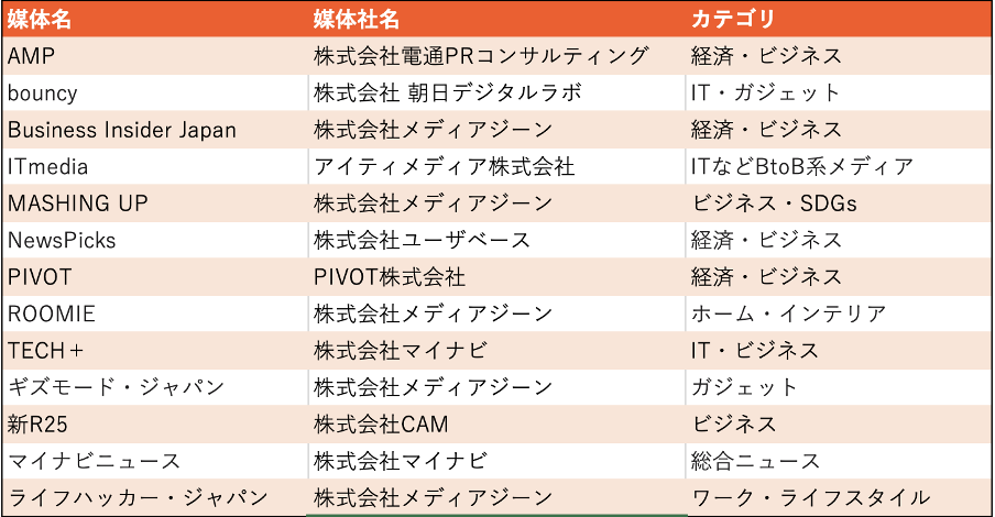 媒体名 | 媒体社名 | カテゴリ |