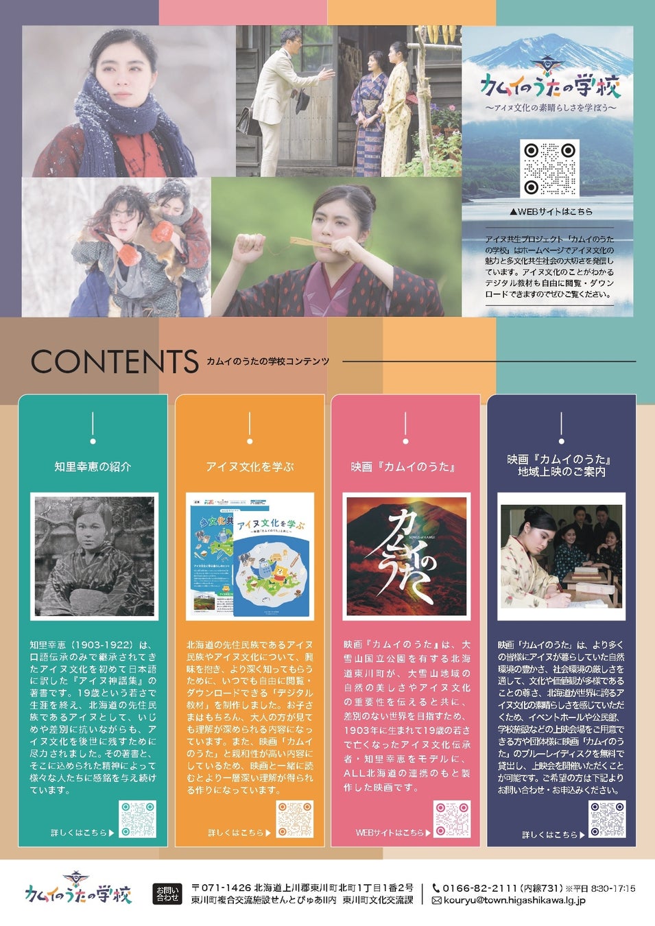 東川町の企画で2023年11月に製作した映画「カムイのうた」を通じ、多文化共生社会の実現を目指す、アイヌ共生プロジェクト「カムイのうたの学校」。