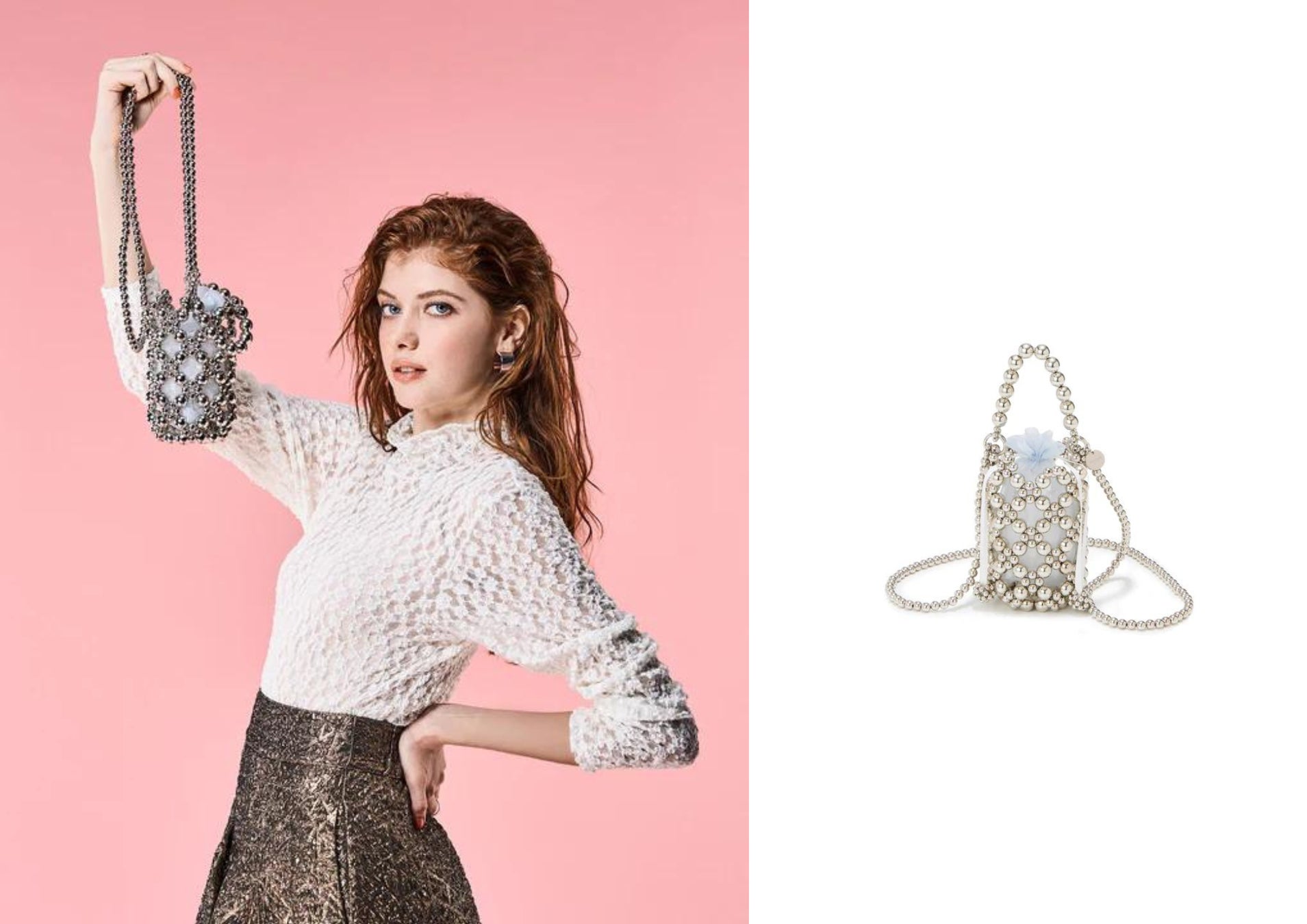 ■商品名:ボールビーズ ミニ ショルダー バッグ オーガンジー巾着ポーチ付き