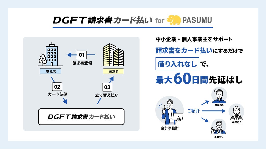 税理士事務所の顧問先中小事業者へB2B決済サービス 「DGFT請求書カード払い for PASUMU」を提供開始