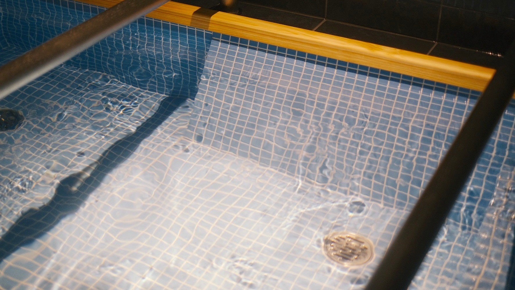 水風呂はフローティング(浮遊感)をテーマに、人間工学的に最適と言われている3種類の角度を用いました。