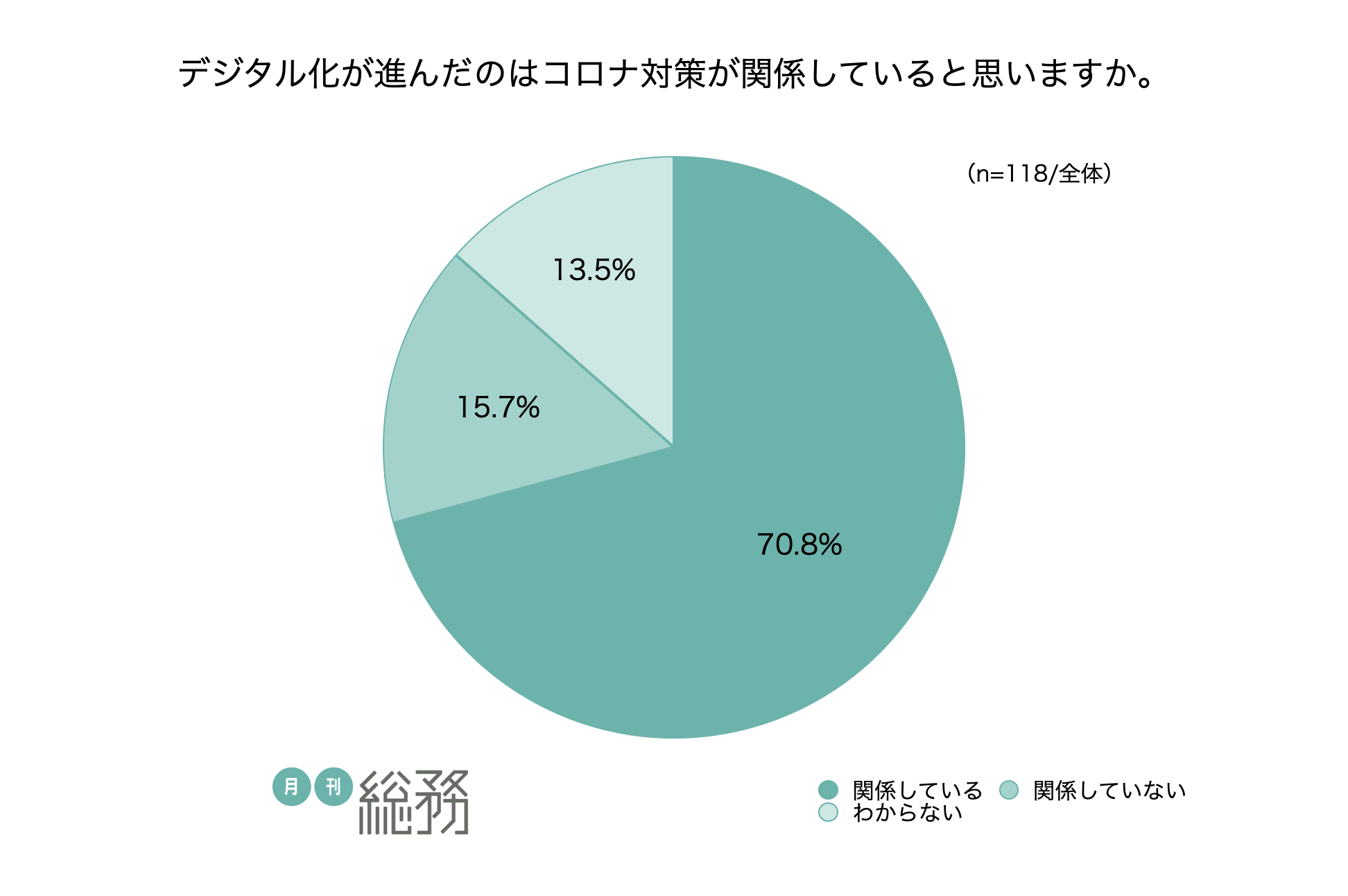 - 約7割がデジタル化の推進はコロナ対策が関係していると回答