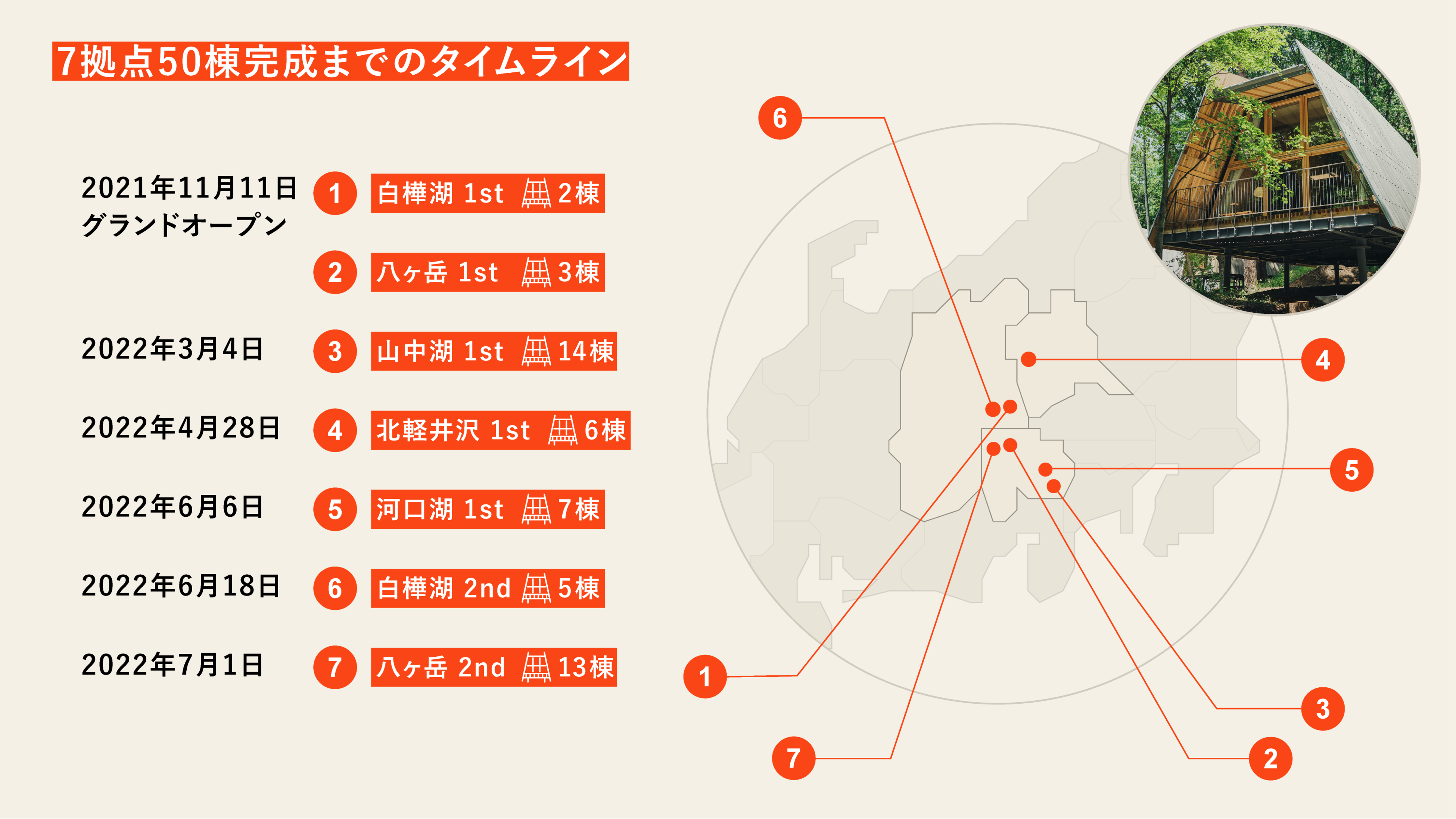 ・2022年7月 「八ヶ岳 2nd」開業 7拠点50棟完成
