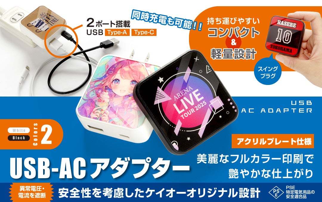 美麗なアクリルフルカラー印刷 & 独自設計で安全性を考慮した「オリジナル USB-ACアダプター」のOEM制作をスタート!【株式会社ケイオー】