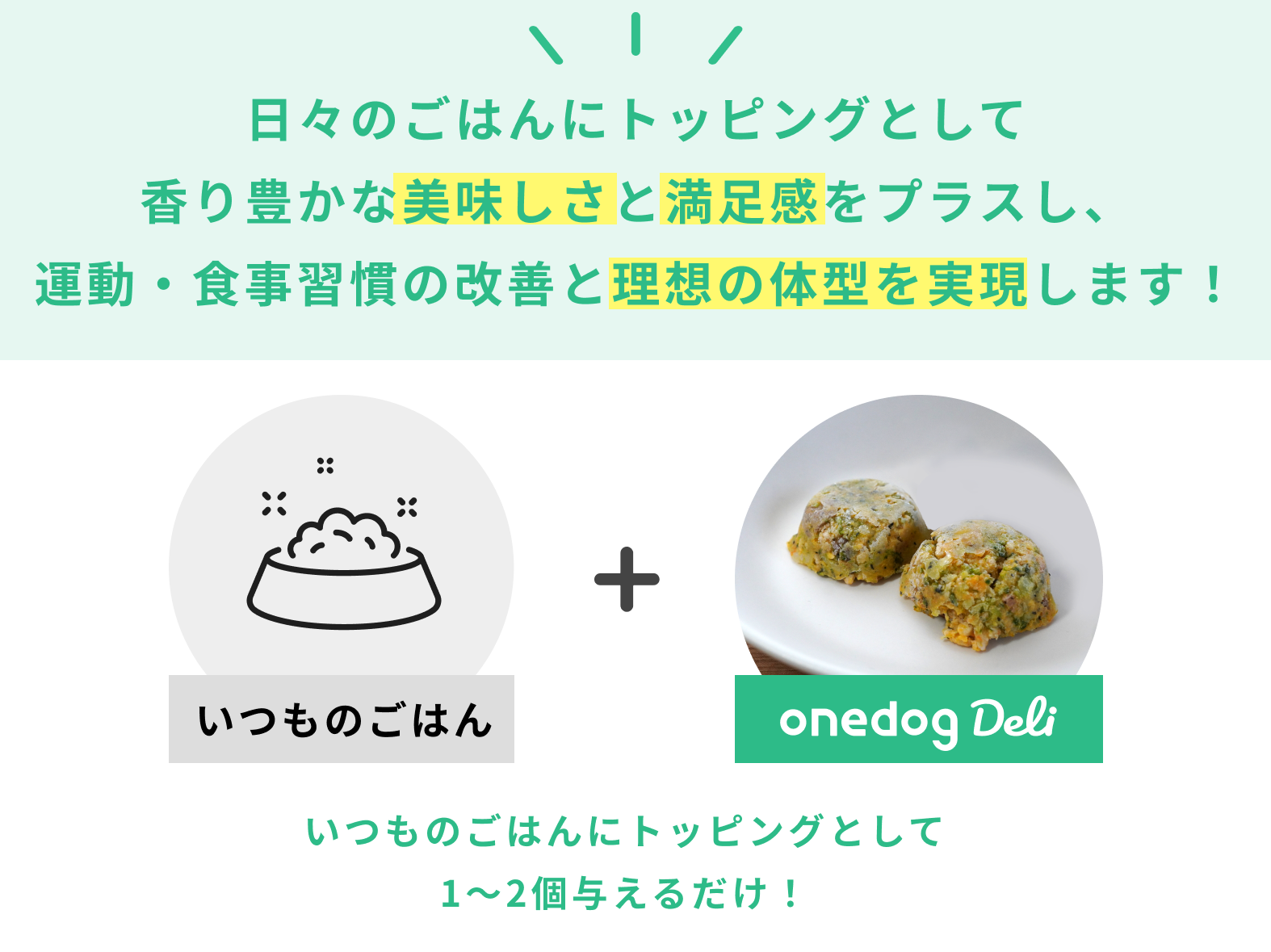 普段のフードにトッピングとしての利用もできるので、香りと風味豊かな onedogDeli をいつものごはんにちょい足しで愛犬の満足感・満腹感をサポートすることも可能です。