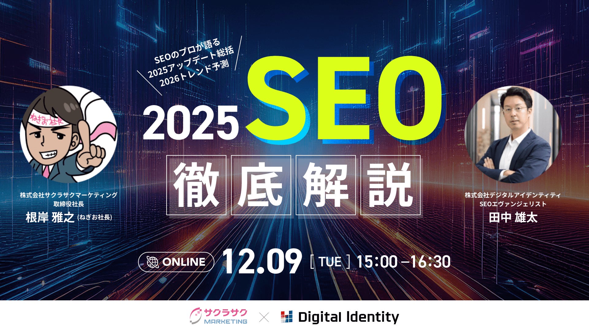 サクラサクマーケティング株式会社(本社:東京都渋谷区、取締役社長:根岸 雅之)は、2025年を締めくくる年末特別企画として、株式会社デジタルアイデンティティ(本社:東京都渋谷区、代表取締役社長 鈴木 謙司)と共催で「2025年SEOアップデート完全解説&2026年トレンド予測」オンラインセミナーを2025年12月9日(火)に開催いたします。