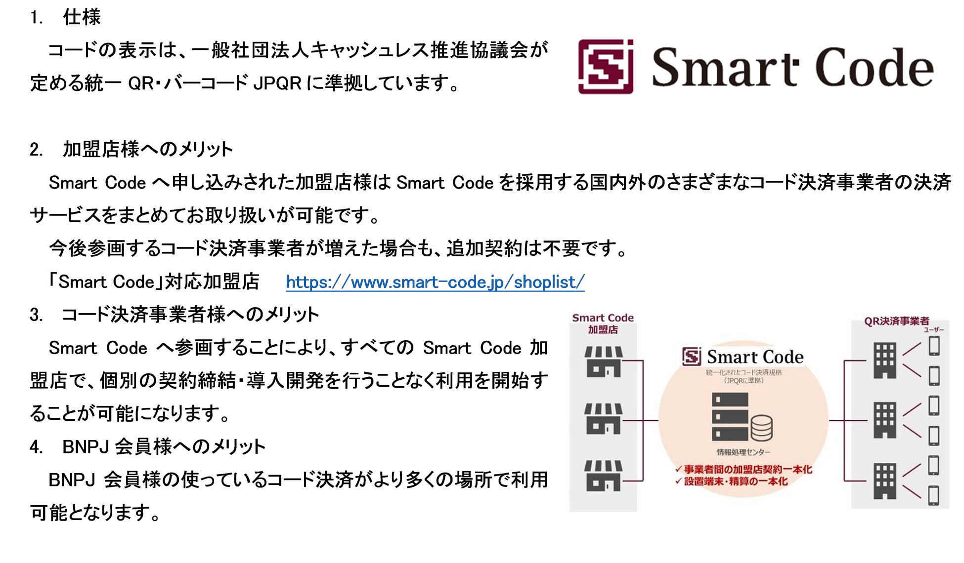 ~「Smart Code™」加盟店で「BNPJ Pay」が利用可能に~ 7月31日(月)利用分までお支払手数料無料キャンペーン実施