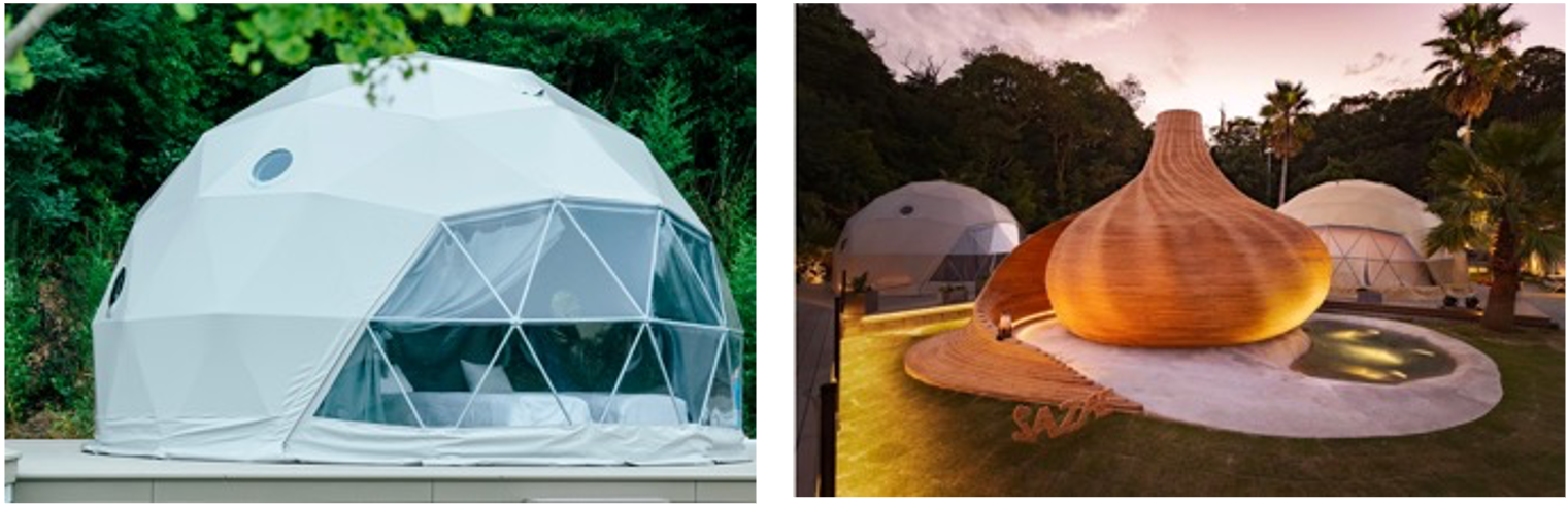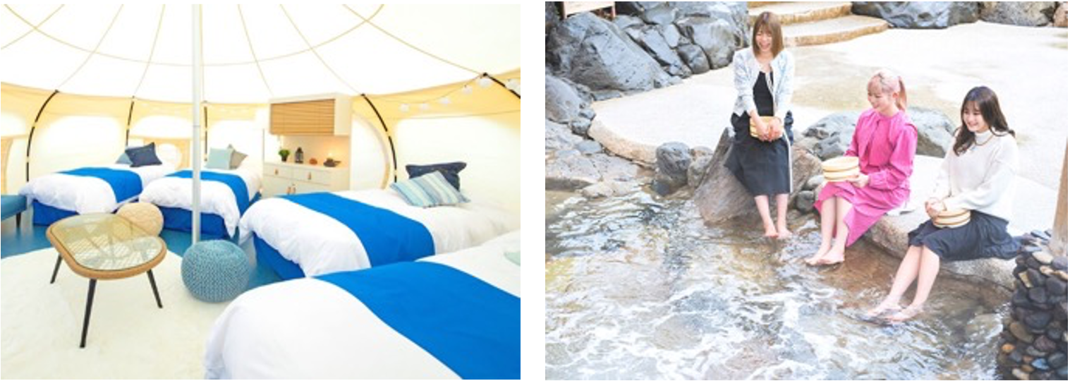 昨年オープンした新しいグランピング施設。テントサウナや天然温泉も利用できます。