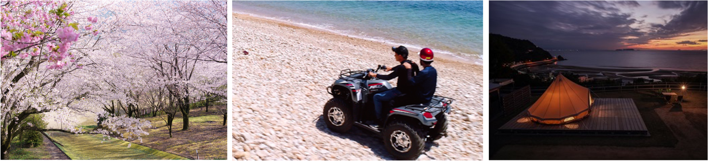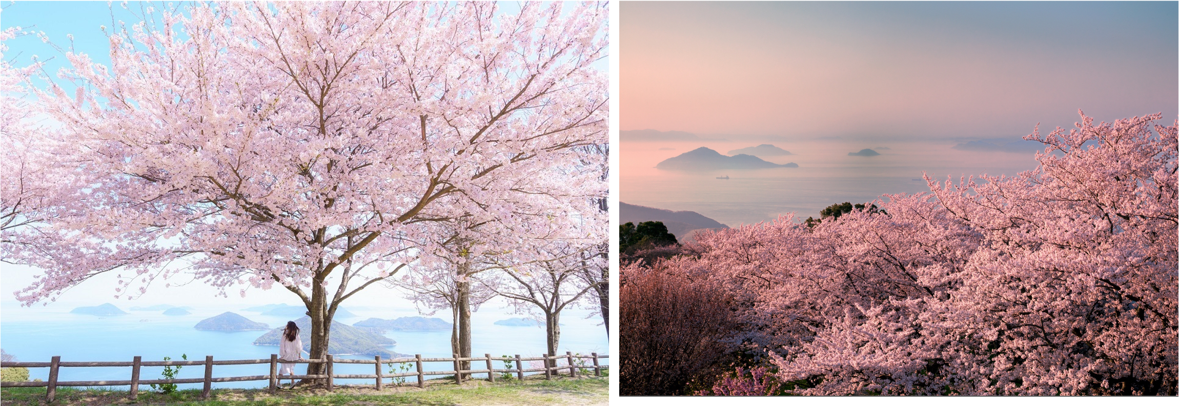 街のすぐ近くに豊かな自然がある香川県は、海にも山にも、スイスイ快適に移動できる場所です。春には、世界から注目されているスポットでの花見も人気です。例えば、2019年のニューヨークタイムズ電子版で、訪れるべき52スポットのひとつとして日本から唯一セレクトされた荘内半島の桜。瀬戸内海の風景とひとつになった幻想的な風景は、一生の記念になるような眺めです。また、荘内半島の近くには、日本のウユニ塩湖として知られる「父母ヶ浜」もあります。ここには1日1組限定のキャンプ場があり、アウトドアスポットとしても人気上昇中。桜とキャンプ、両方を楽しむ欲張りな旅ができます。ほかにも桜の美しい公園が多数あり、いろいろなグランピング場やキャンプ場がある香川で、桜とアウトドアをのんびり楽しむ春の旅を満喫しませんか。