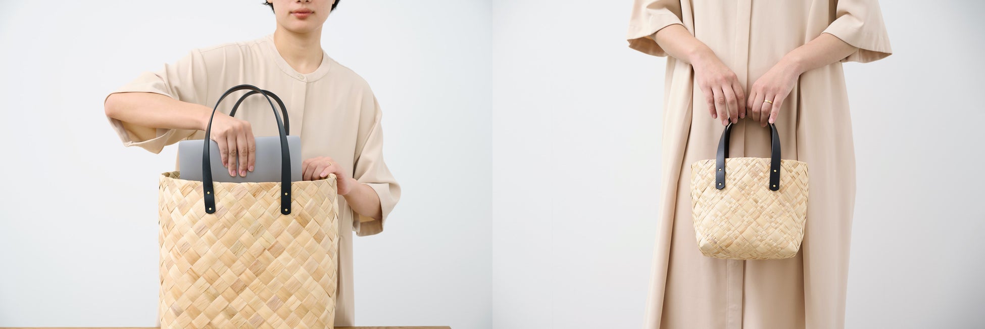 月桃編みは日本の奄美や沖縄にもある工芸で、台湾では主に南部の屏東や台東エリアで原住民により営まれてきました。その歴史は文献にも記録されていない大昔までさかのぼるといわれ、原住民は土地にある自然繊維を暮らしのあらゆる用品や食べ物に使いこなしてきました。月桃は、原住民の一生に欠かせない重要な存在とみなされています。「桃布里」は今回、独自の新しい編み方を研究開発し、素材の美しさを表現する「編みバッグ」シリーズをお披露目します。