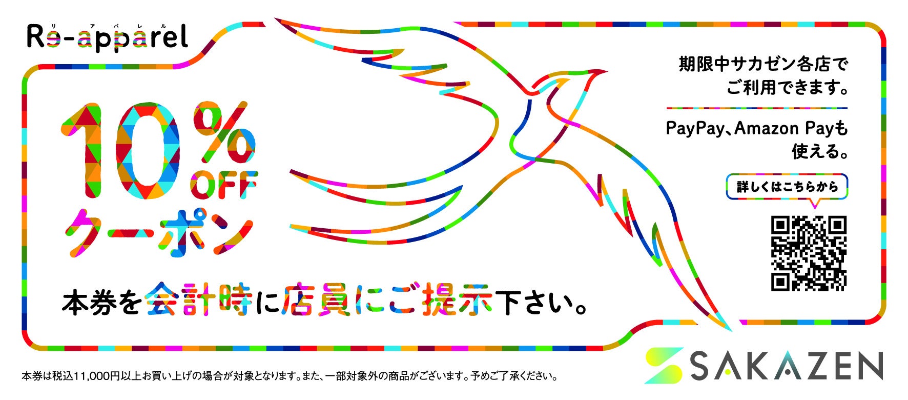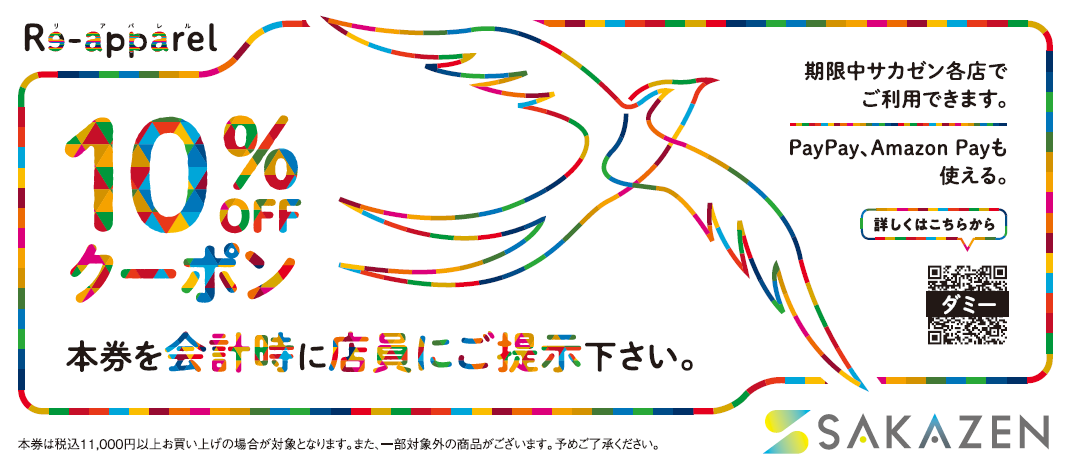 衣類の回収にご協力頂いた方には実店舗で使用できる10%OFFクーポンを配布いたします。