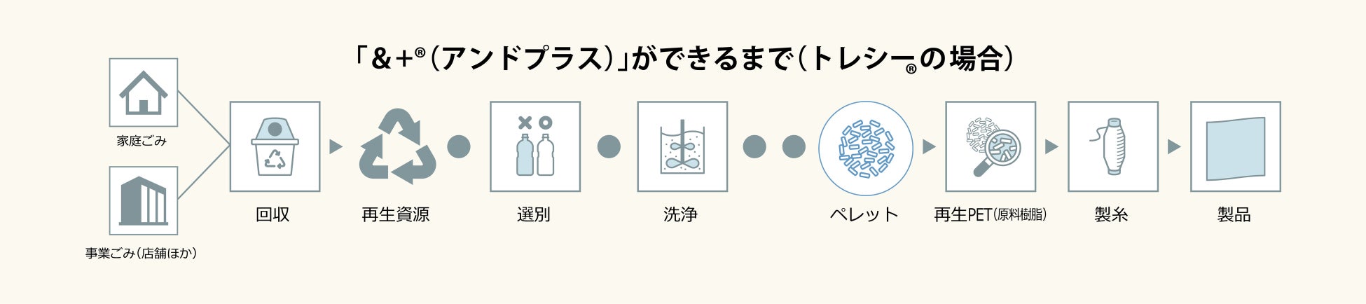 東レの&+®は回収PETボトルなどを粗原料としたリサイクル繊維ブランドです。