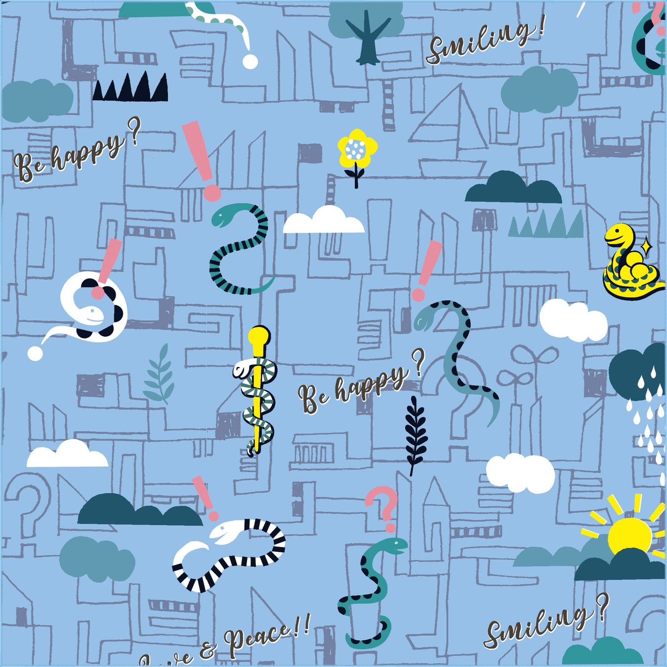 ヘビは脱皮を繰り返して成長していくことから、古来より「無限」や「再生」の象徴とされ、無限の知恵や富、そして強い生命力をもたらすと考えられてきました。そんな知恵のあるヘビが「なぜ(?)」「そうだ(!)」を無限に繰り返し、ワクワク楽しそうに新たな環境に馴染んで行く様子をイメージしてデザインしました。