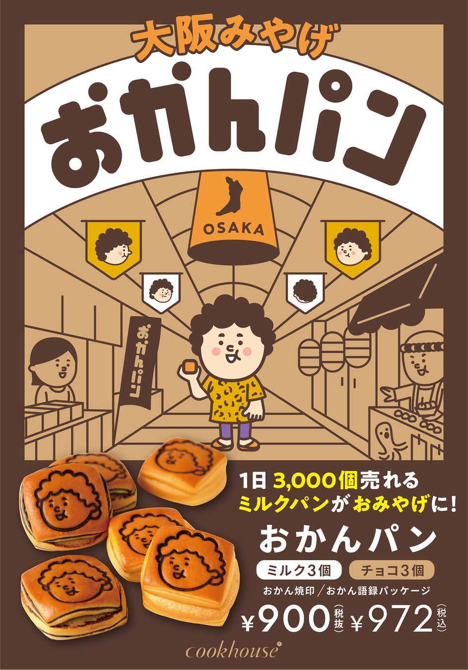 今年創業78周年の株式会社ダイヤ(本社:大阪市生野区新今里 代表取締役社長:多田俊介 以下 ダイヤ)が運営する「クックハウス」は、1日3,000個を販売する人気商品であるミルクパンを進化させ、“大阪おかん”の焼き印を付けた「おかんパン」を7月12日(金)から販売します。販売店は、クックハウス阪急三番街店・あべのキューズモール店・なんばウォーク店などをはじめとする19店舗です。ミルクとチョコ味の6個セットで1箱972円(税込)です。2025年大阪万博も見据え、大阪の定番のおみやげになることを目指しています。