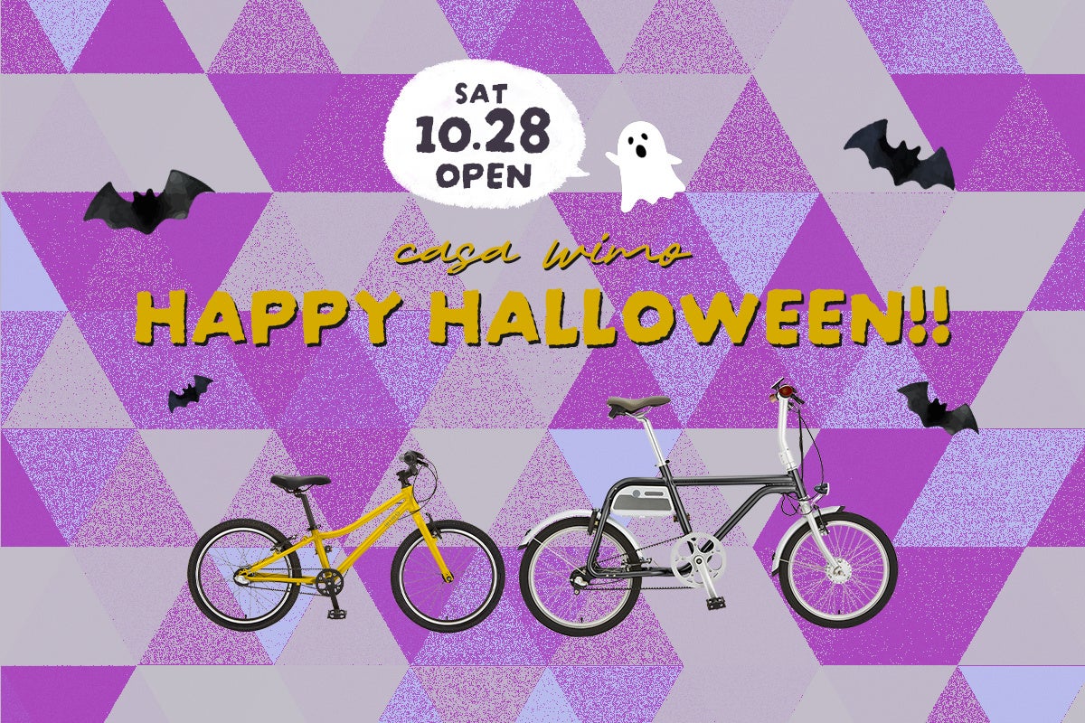 10月28日(土)に中目黒のショールーム「CASA WIMO」で行うハロウィンイベントでは、wimo kids 16 を中心としたラインナップで特別販売会を開催いたします!気になっていた自転車をすぐにお持ち帰りいただけるチャンスです!是非足をお運びください!また、仮装してSNSに投稿すると特別なクーポンをご提供いたします!