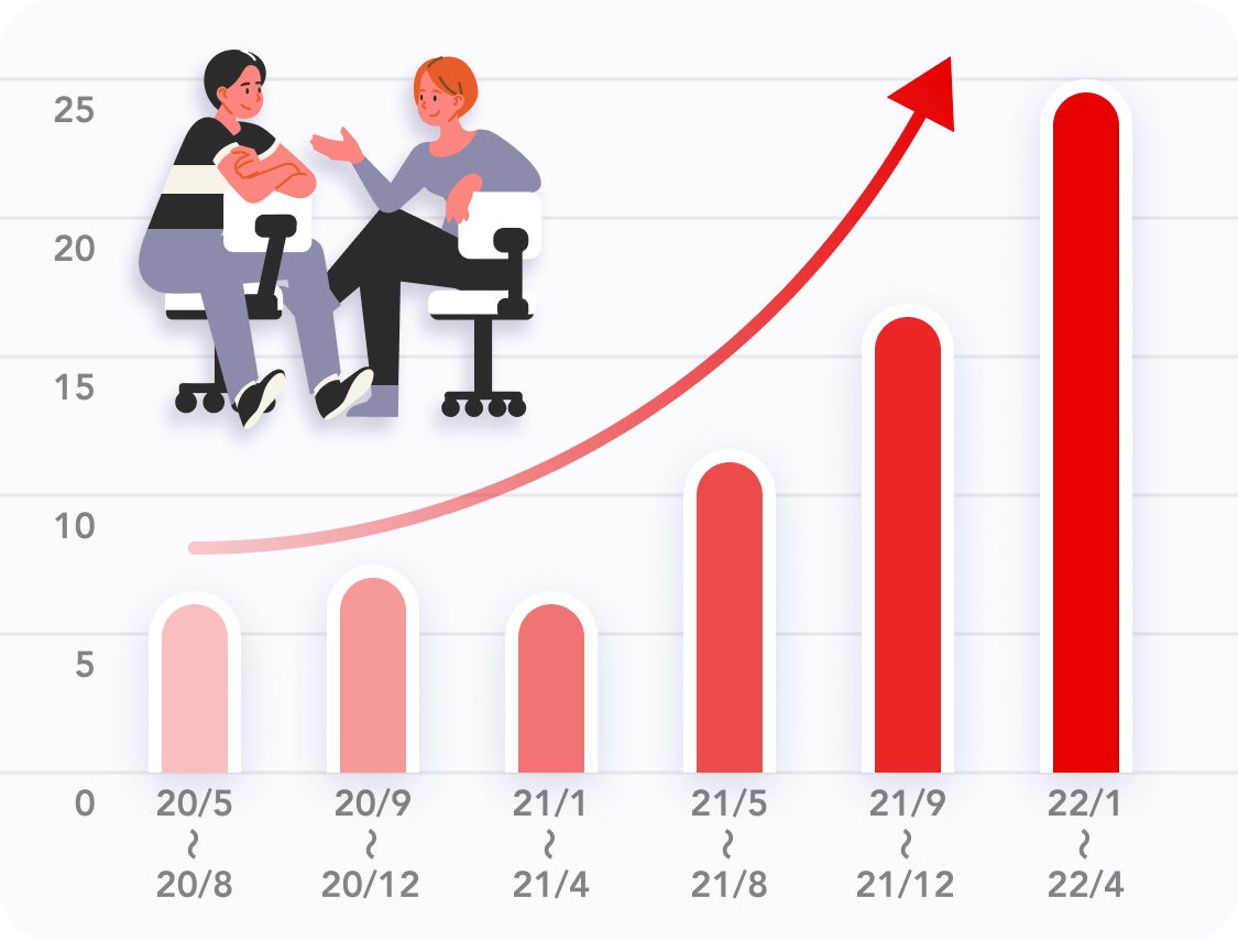 あまり聞かない複業メンバーの評価制度。カウシェでは、正社員だけでなく複業メンバーに対しても事業により活躍できる場を提供し、また成果に応じて報いたいという思いから、昇給制度を設けています。