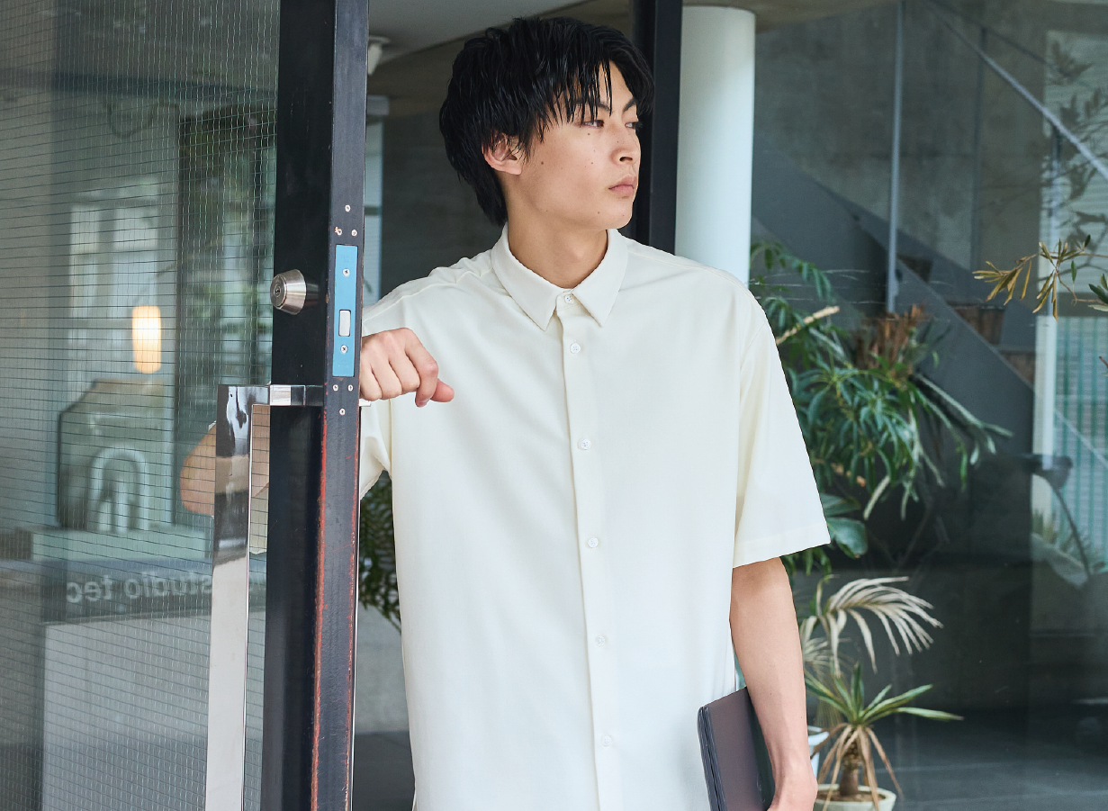 しかし、どうしてもこのトップスを実現させたい。その一心で今季こそは、暑い夏に向けた快適さと着心地の良さを兼ね備えた素材にアップデートさせる開発に取り組み、初回製品より7年の時を経て、ようやく新素材の開発をUNITED TOKYO独自で成功させることができました!