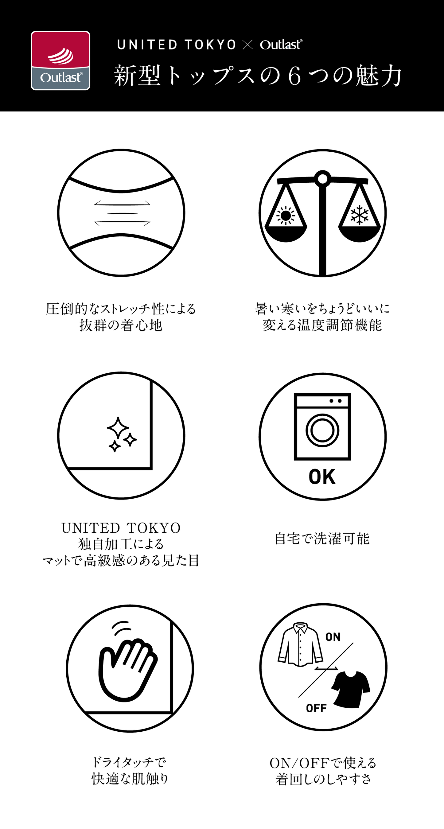 UNITED TOKYO「OUTLAST」シリーズは、特殊素材OUTLAST(アウトラスト)を使用したアイテムであり、代名詞と言っても過言ではない看板シリーズです。この商品からUNITED TOKYOを知っていただいたお客様も少なくありません。
