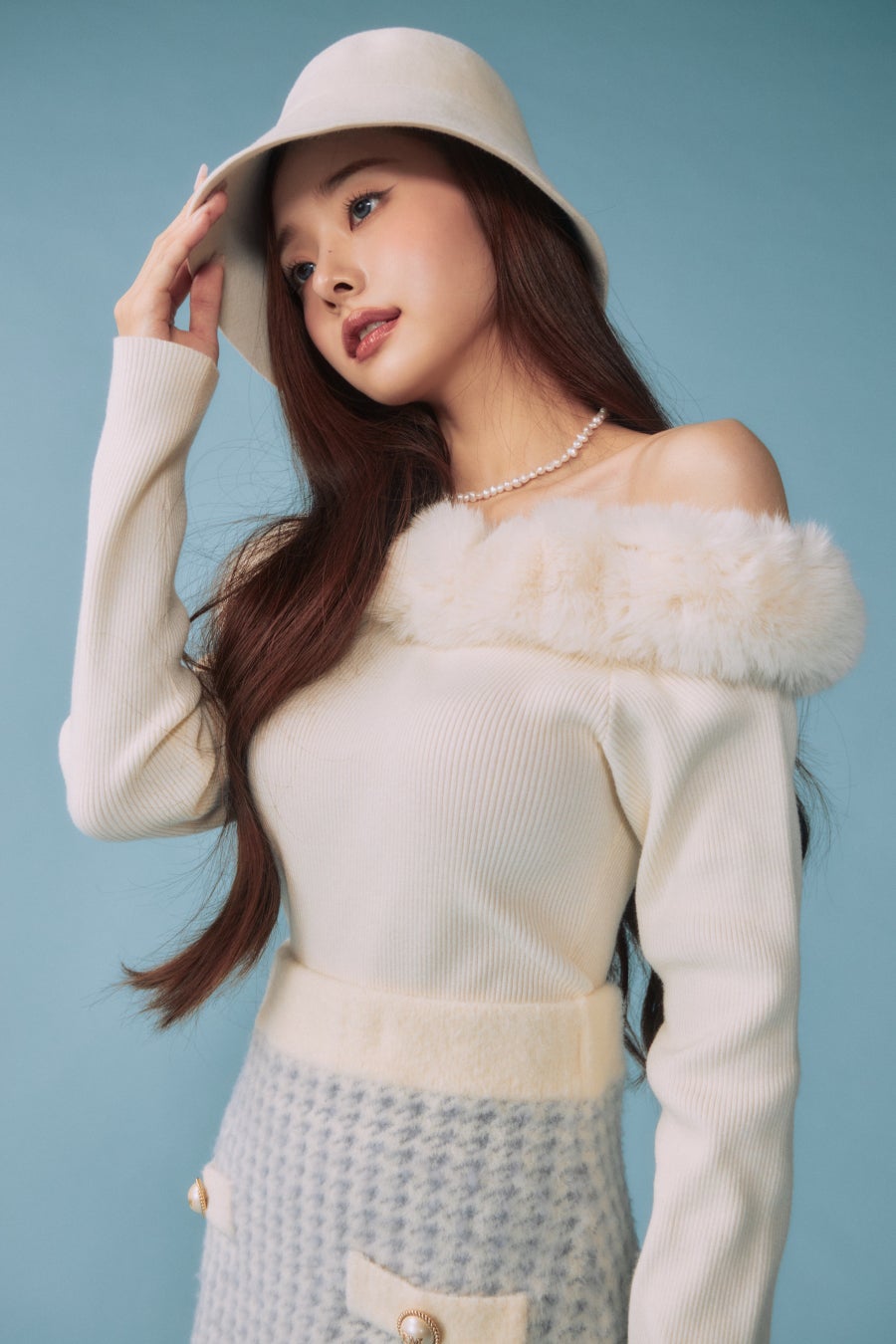 Tops ¥15,400 / Skirt ¥15,400 / Hat ¥25,300