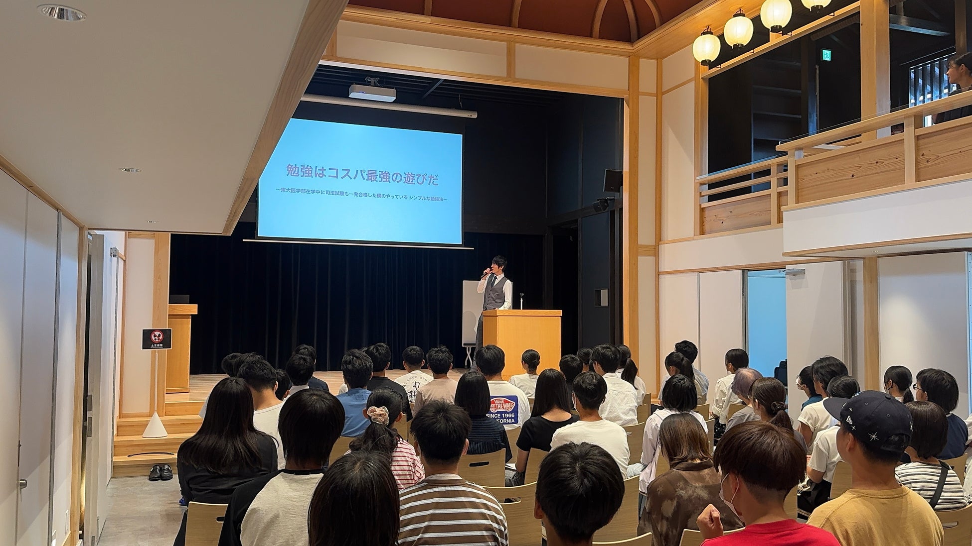 第2部では「勉強はコスパ最強の遊びだ」をテーマに、学ぶことの価値や成果を高める勉強法について講演。会場には中高生や保護者など100名を超える参加者が集まり、熱心に耳を傾ける様子が見られた。