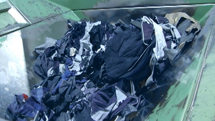 ディーゼルのサプライチェーン・サステナビリティ・マネージャーであるファビオによると、ディーゼルは年間約400万メートルのデニム生地を使用してコレクションを生産しています。最も効率的な裁断・縫製技術を用いても、15パーセントの裁ち落としが発生します。これは衣服を製作する際に裁断室の床に散らばる余剰素材、いわゆる裁断くずです。そこでディーゼルとテジドス・ロヨは、生地の廃棄物を細かく裁断し、分解して、通常の再生綿と混ぜ合わせて新しい糸を作り出す工業プロセスを共同で開発しました。