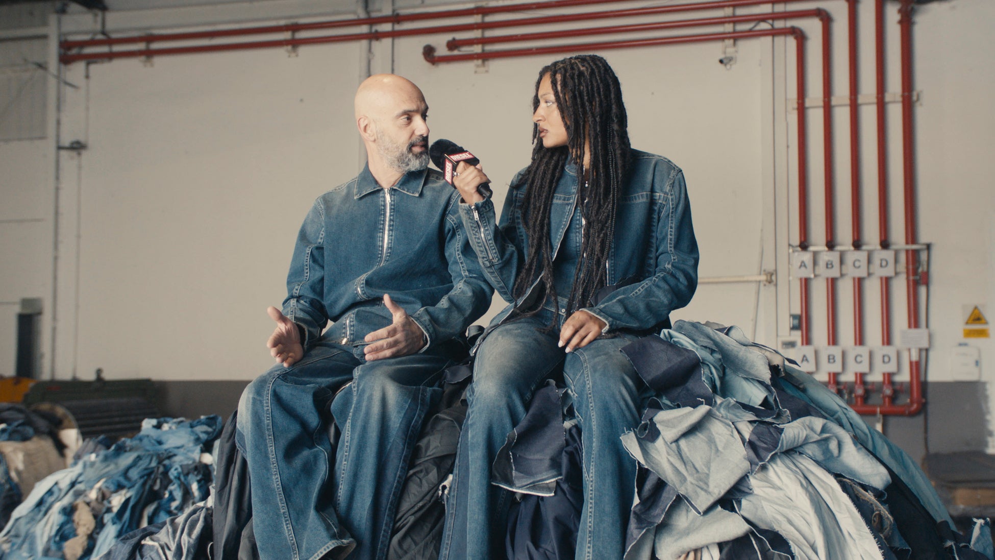「Diesel: Behind the Denim デニムの裏側」のエピソードは、レアがクリエイティブ・ディレクターのグレン・マーティンスのところにもどり、ディーゼルのサステナビリティと責任ある製造をめぐる旅の報告をするシーンで締めくくられています。ディーゼルのデニム生産現場を訪問しさまざまなステップから新しい知識を得たレアは、デニムを「大きな影響力を持つ世界共通のユニフォームのようなもの」と捉えています。グレンも同意見です。ディーゼルのデニム生産ほどの大きな規模でサステナビリティに取り組むのであれば、「思い切ってやるべきだ」と話します。