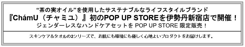 “茶の実オイル”を使用したサステナブルなライフスタイルブランド『ChámU(チャミユ)』初のPOP UP STOREを伊勢丹新宿店で開催!