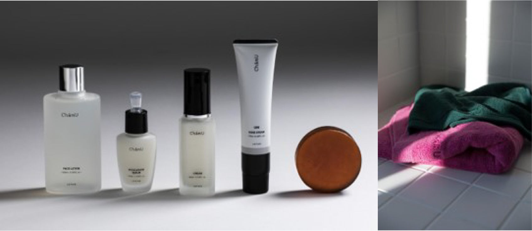 美容成分を100%配合したSKIN CARE(スキンケアシリーズ)と、触り心地・機能性抜群のFABRIC(タオルシリーズ)の2シリーズを販売いたします。
