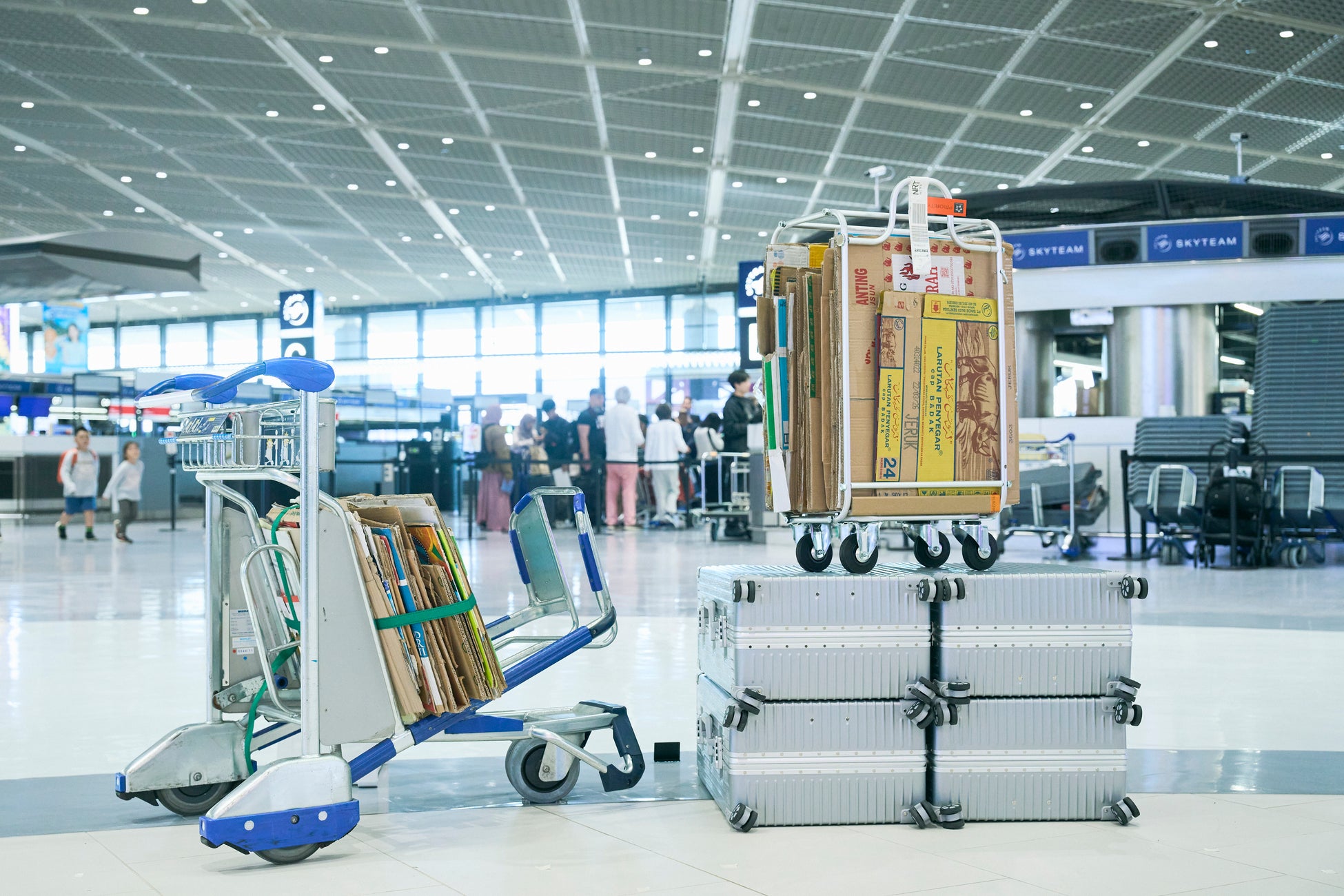 世界中の段ボールを拾い集め、持って帰るための「段ボール運び」専用のキャリーケースです。
