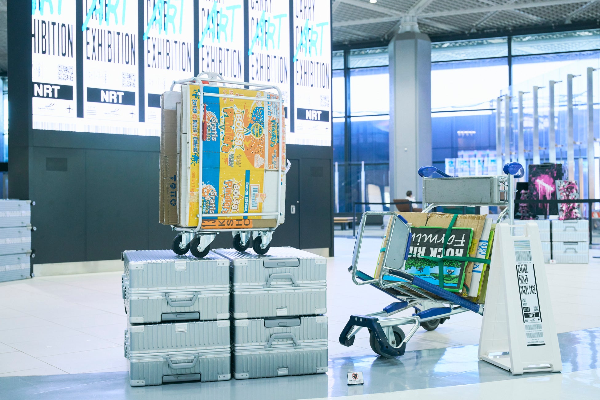 「キャリーケース」とは車輪がついたスーツケースやトランクなど、車輪がついた小型バッグ類を示す和製英語です。「引き連れて持ち歩く」という機能面に着目した造語が多くの人々に使用され、日本で定着しました。車輪の発明から移動の概念は進化し、人類は空路をも利用するようになった現在。人々はキャリーケースと共に、飛行機で世界を飛び回り、様々な文化や思い出を持ち帰ってきました。本展示はキャリーケースを題材にした、日本のアーティスト達による作品が集う企画展です。日本の玄関口である成田空港にて、日本に訪れた人々がアートの体験や思い出を持ち帰り、そして日本の才能が世界へ飛び立つ機会の創出を目指します。