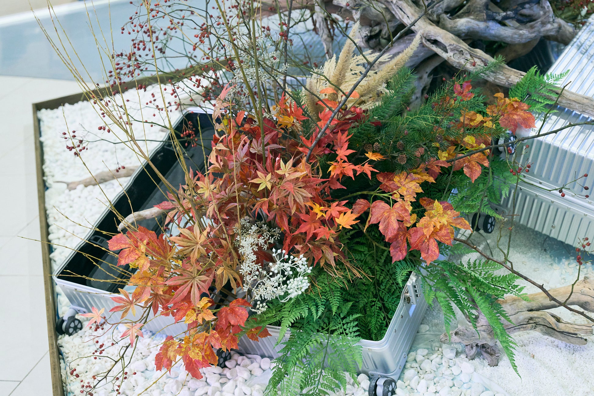 7組のアーティストによるキャリーケースを題材とした作品展示